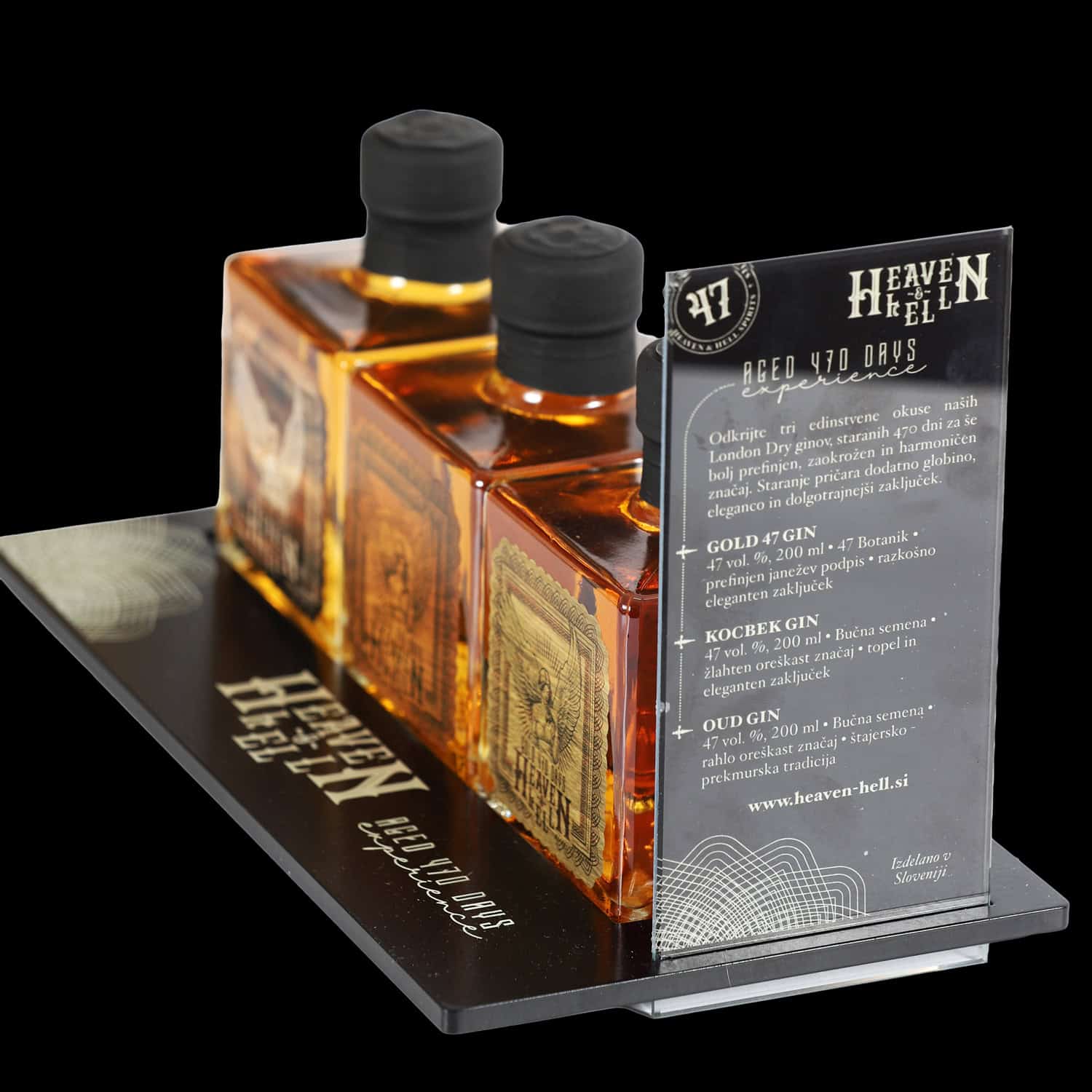 Ekskluziven degustacijski set staranih ginov, namenjen tistim, ki cenijo globino, zaokroženost in prefinjen zaključek. Gini so starani 470 dni, kar jim daje več kompleksnosti, topline in elegance. Gold 47 razvaja s prefinjenim botaničnim podpisom, Kocbek z žlahtnim oreškastim pridihom, Oud Gin pa z orientalsko razkošnim in večplastnim značajem.